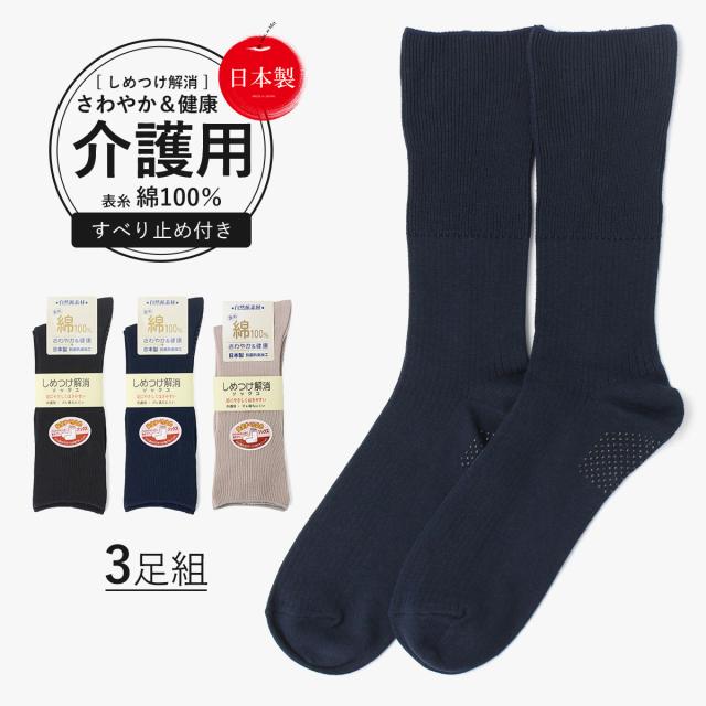 介護用靴下 しめつけ解消 [ 3色 3足 セット] 靴下 ゆるい ソックス メンズ 消臭靴下 消臭 臭わない ゴム の ゆるい 口ゴムなし みたいに ゆったり 履き 口 男 男性 日本製 表糸 綿100 綿100% 滑り止め 高齢者 介護用 むくみ 足のむくみ 紳士用 しめつけない ゴム 緩い