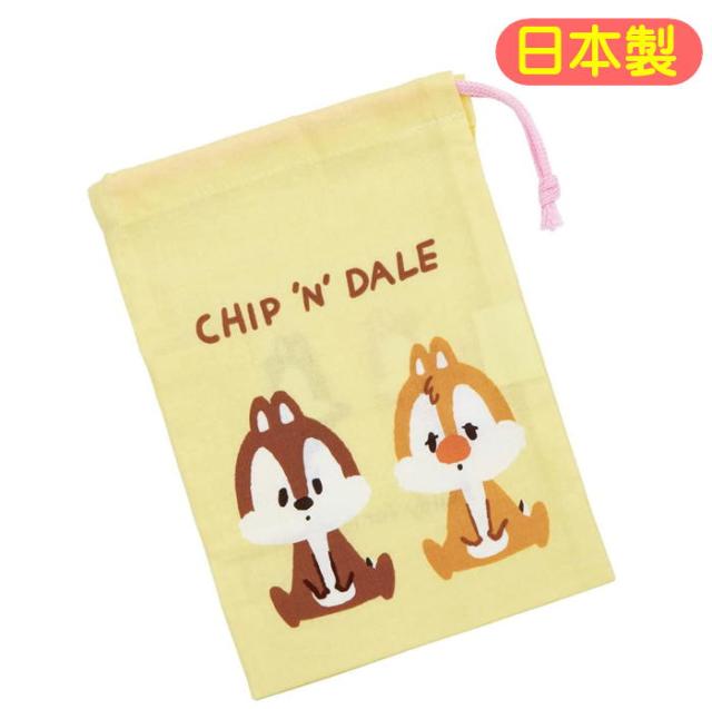 チップ&デール くすみキュート コップ袋 ディズニー キャラクター 歯ブラシホルダー付 巾着 コップ入れ スケーター KB62 イエロー