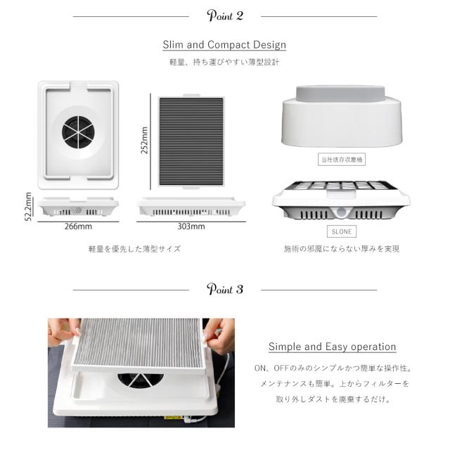 施術後、都度フィルター内のダストを捨ててお使いください。