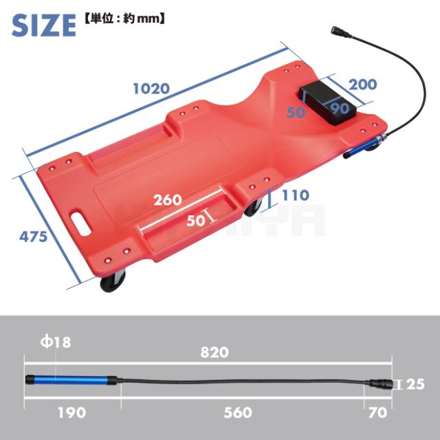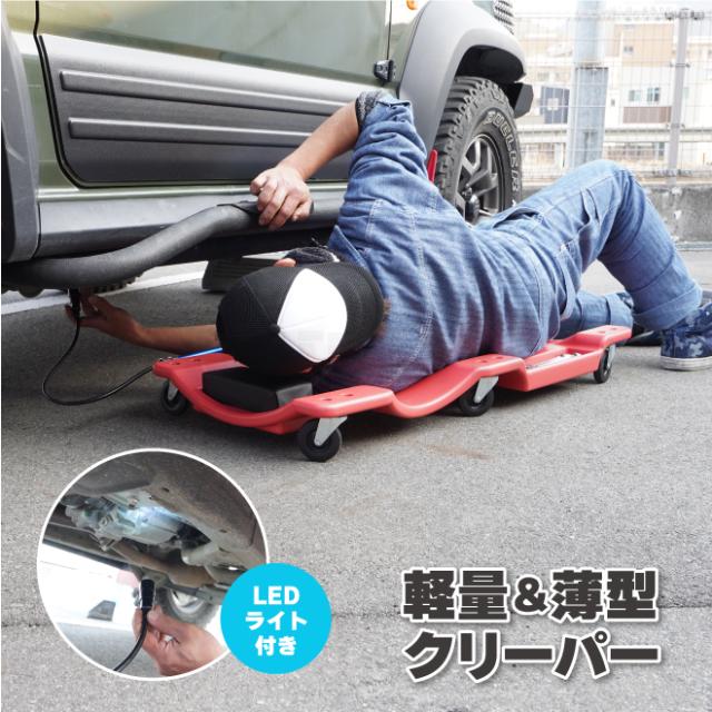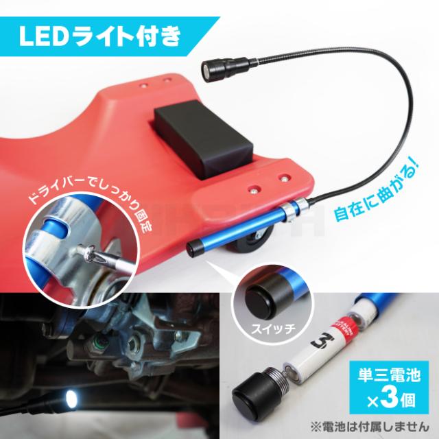 寝板 LEDライト付 クリーパー 低床 軽量 薄型 車 メンテナンス 整備 メカニッククリーパー キャスター KIKAIYA