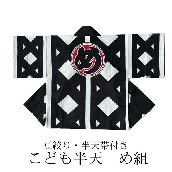 はっぴ 子供用半天セット め組 3点セット【サイズ:1〜3号】【素材:綿100%】(法被 ハッピ 半纏 伴天 半天 はんてん 火消 めぐみ め コスプレ こども キッズ 3点セット セット)