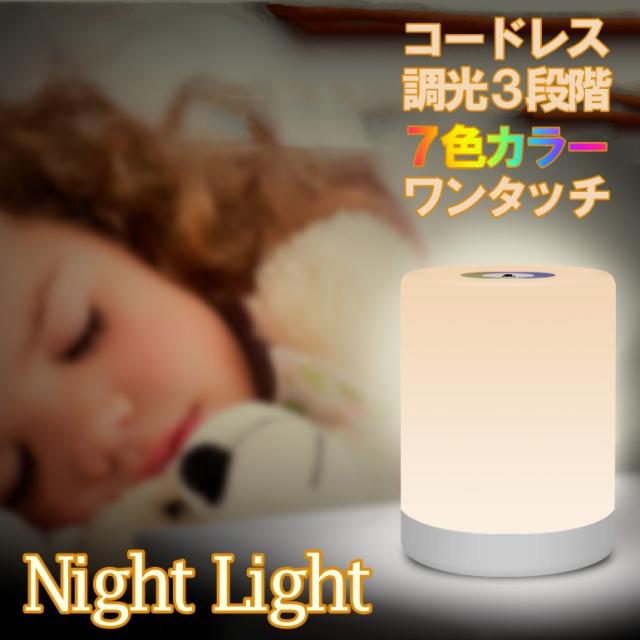 ナイトライト 7色 USB 充電式 小型 ベッドサイド テーブルライト ライト おしゃれ 調光 明暗 寝室 暗い LED 明るさ調整 明るい 赤ちゃん 育児 置き型 コードレス タッチライト