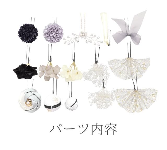 成人式 振袖 髪飾り 15点セット つまみ細工 振袖用 髪飾りセット タッセル プリザーブドフラワー レース Uピン ヘアアクセサリー 和装 アクセサリー グレー 紫 黒 前撮り 七五三 753 浴衣 袴 入学式 卒業式 結婚式 ブライダル 披露宴 和風 洋風