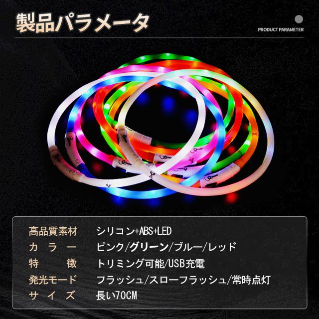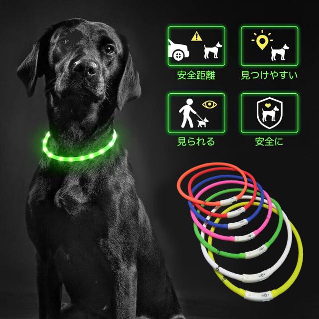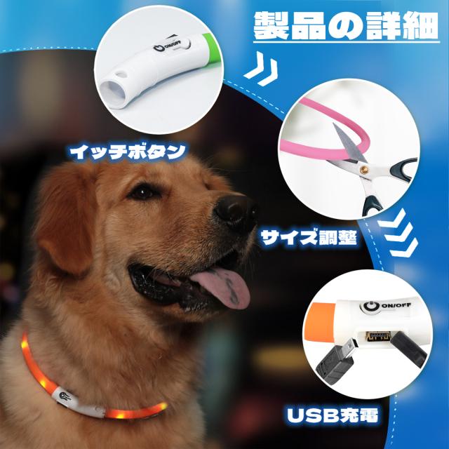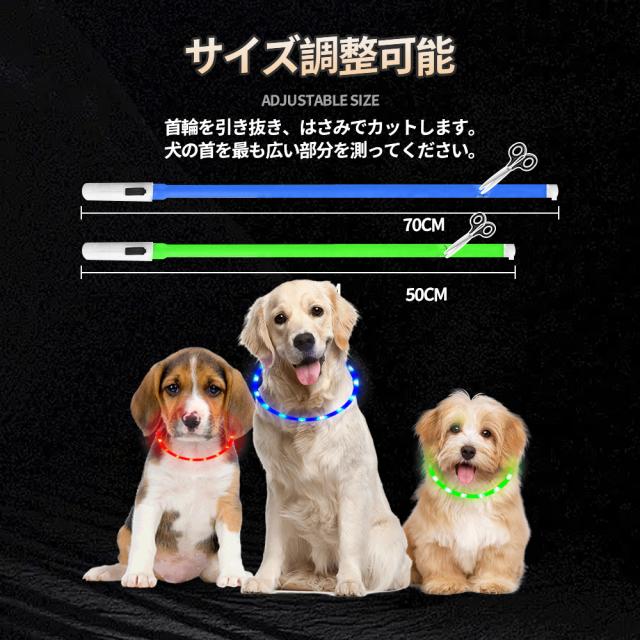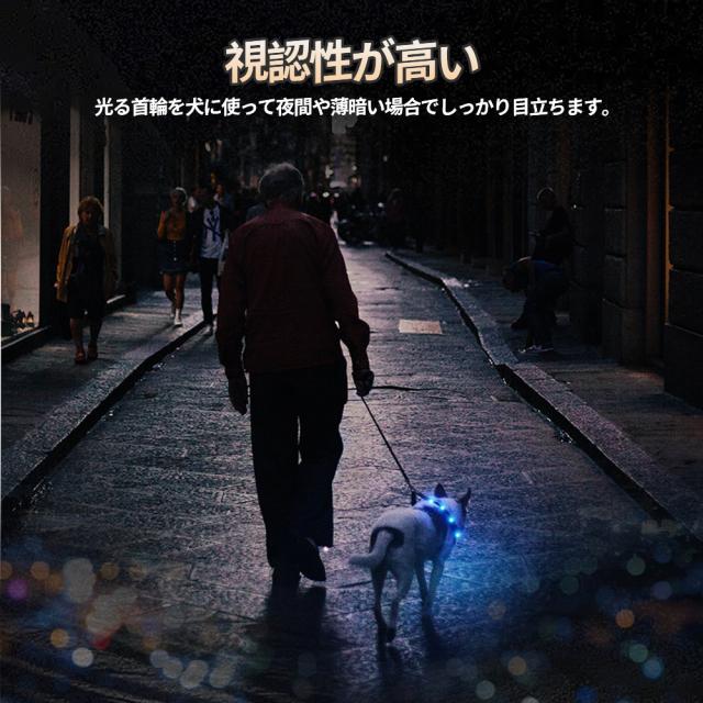発光首輪 ペット首輪 USB充電式 サイズ調整可 猫犬 小型犬 中型犬 大型犬の夜間安全 犬首輪ライト