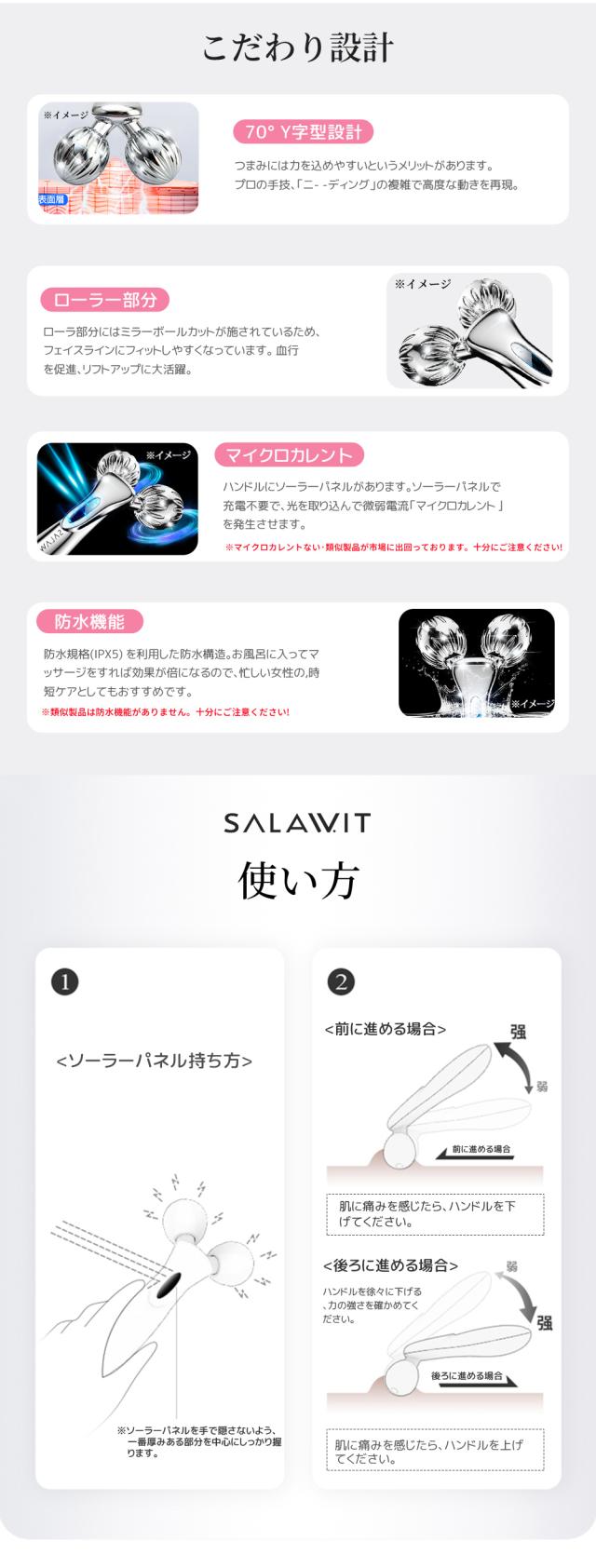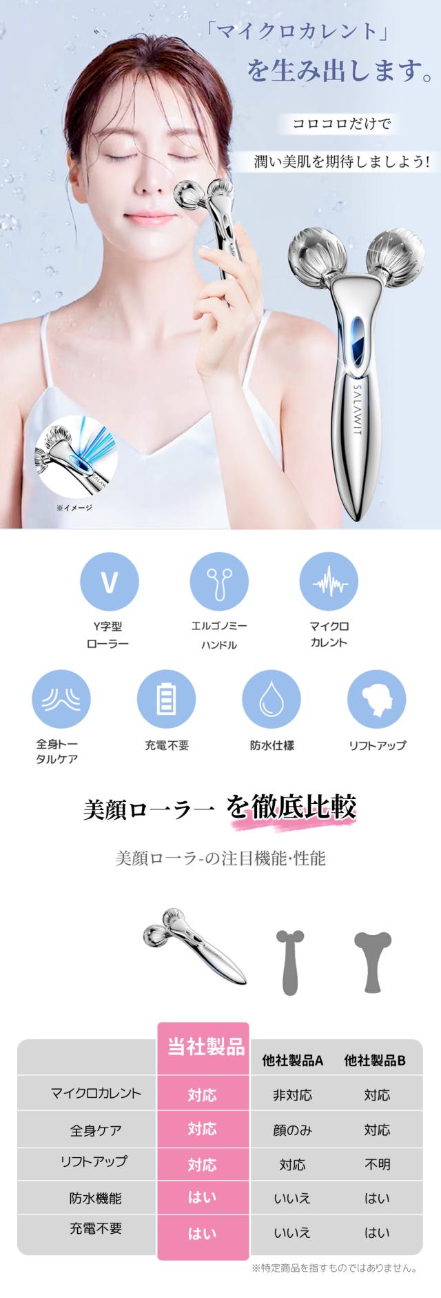 ●商品タイトル:SALAWIT 美顔ローラー 美顔 美容ローラー 美顔器 美肌 美容器 マイクロカレント 小顔ローラー 防水仕様 充電不要 フェイスライン 母の日 プレゼント