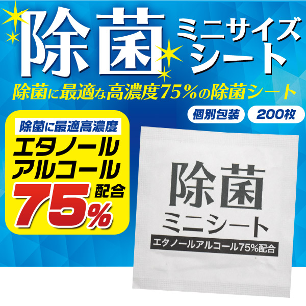 エタノールアルコール75%配合除菌ミニシート 200枚セット