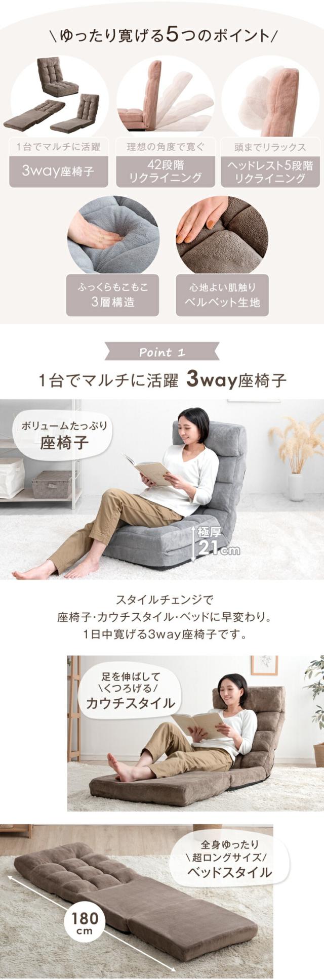 座椅子 リクライニング 3way ニュアンスカラー 42段ギア ハイバック 一人掛け リクライニング座椅子 座イス 椅子 イス フロア チェア チェアー ソファ ソファー ソファベッド ソファーベッド 折り畳み