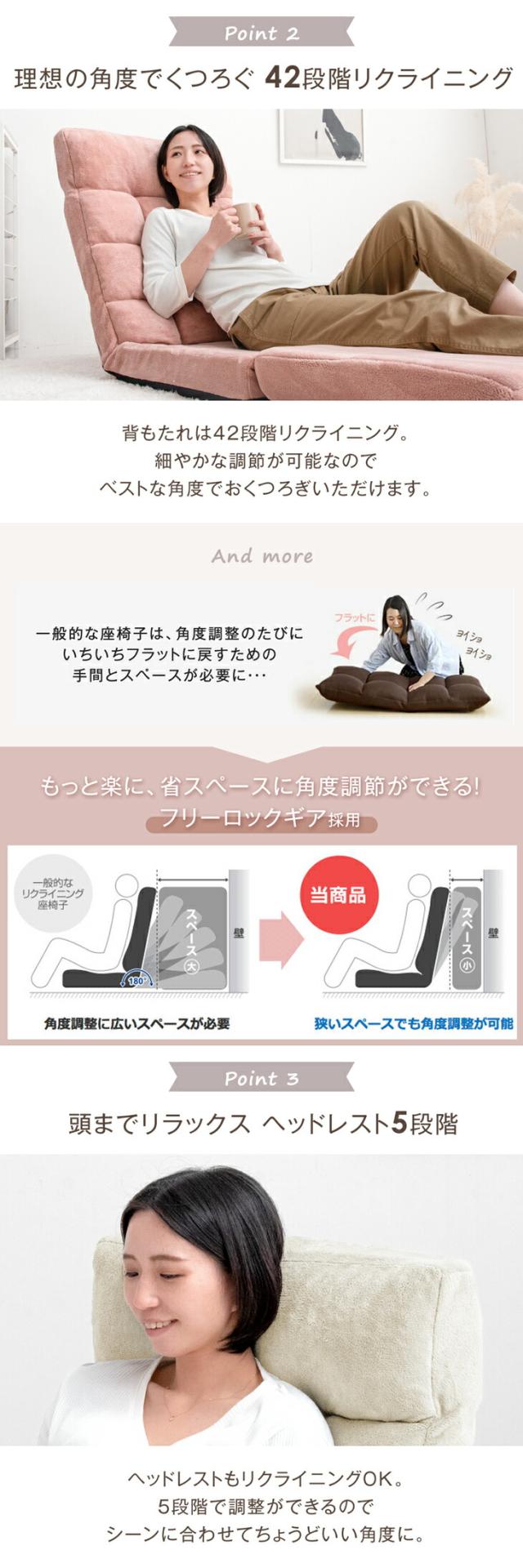 3way ニュアンスカラー リクライニング 座椅子 42段ギア ハイバック 一人掛け リクライニング座椅子 座イス 椅子 イス フロア チェア チェアー ソファ ソファー ソファベッド ソファーベッド 折り畳み グレー ピンク ベージュ おしゃれ【商品番号:15210104】