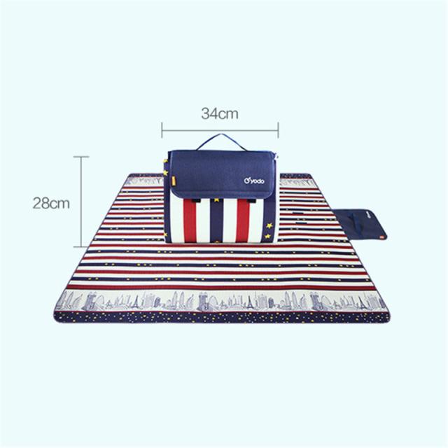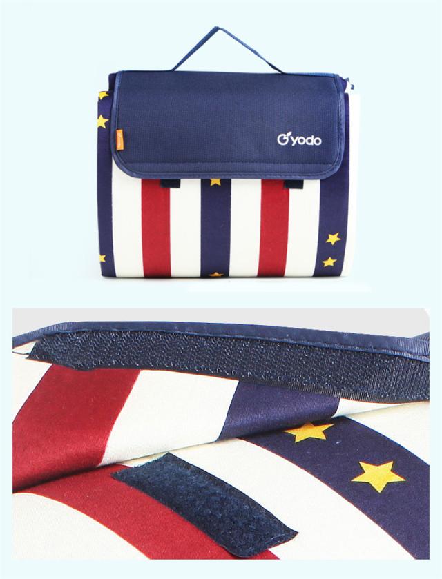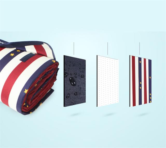 ふんわり厚みのある生地で座り心地もよく快適。裏地は防水仕様で水を通さないので湿った土の上でも安心です。