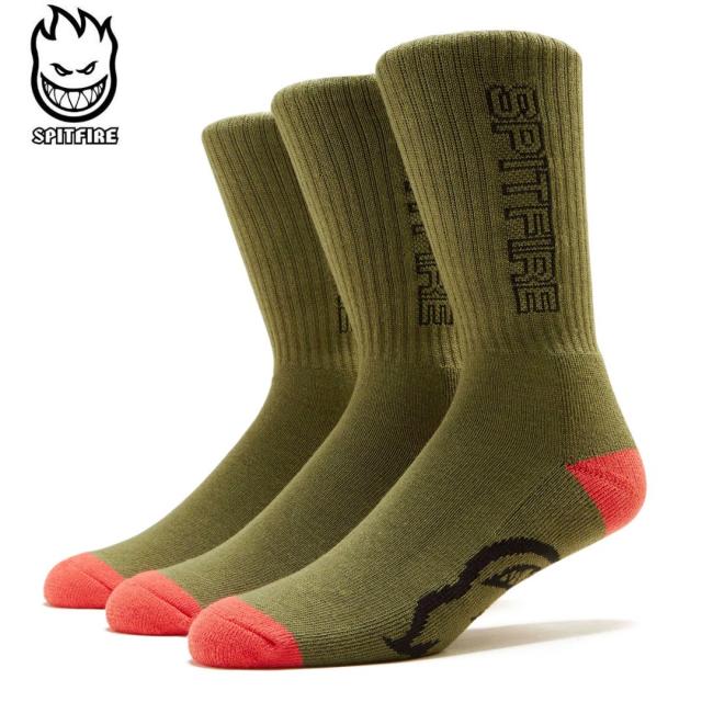 スピットファイヤー SPITFIRE スケボー ソックス CLASSIC 87 3PACK SOCKS オリーブ 3足組 NO44