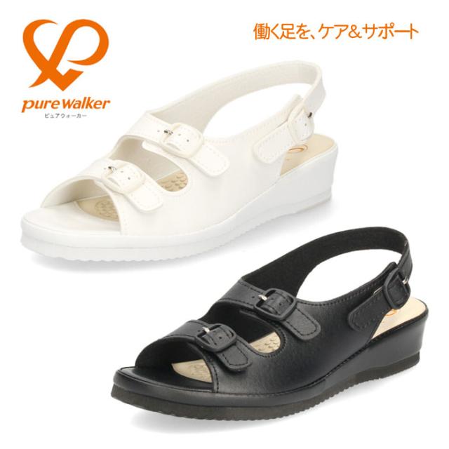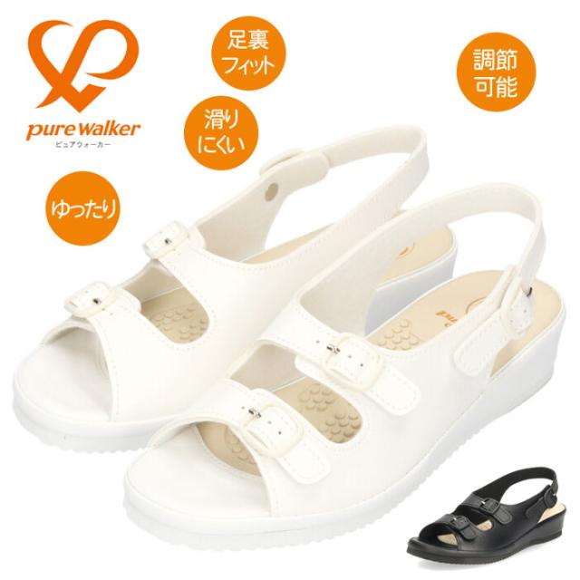pure walker ピュアウォーカー ナースサンダル コンフォート PW7612 オフィスサンダル ナースシューズ 疲れにくい 厚底 黒 白
