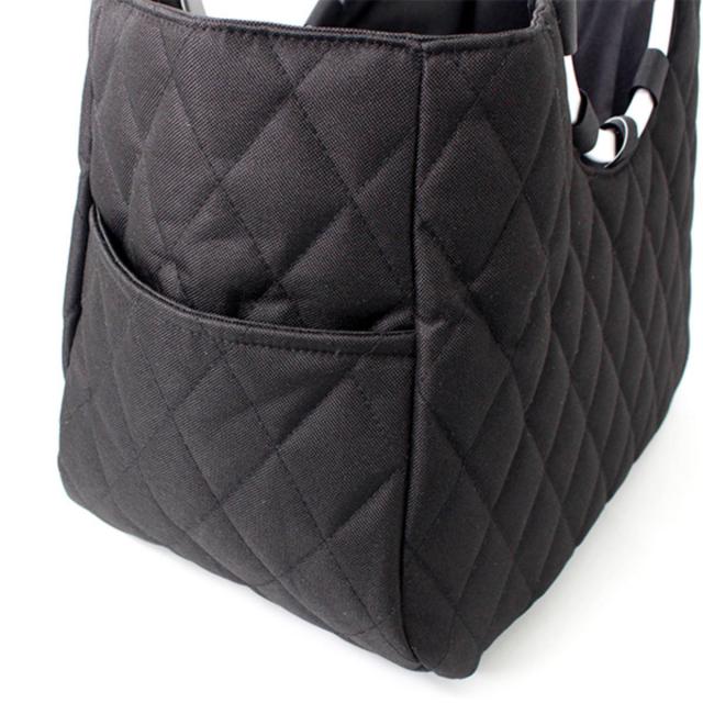 内側にはファスナー付きのポケットが1つ付いており、小物や携帯電話を入れられます。外側にはサイドポケットが2つ付いているので、すぐに取り出したい物を入れられます。大容量のバッグでも、探さずに簡単に取り出せる便利な収納です。