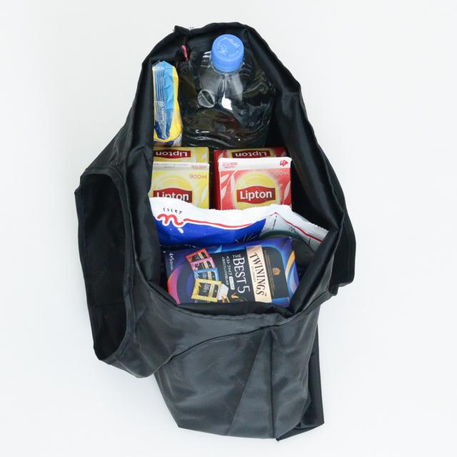 肩掛けしやすいトート型のエコバッグです。沢山買い物しても持ちやすく、小さく折りたためるので、バッグに1つ入れておけば急に荷物が増えた時などに重宝します。