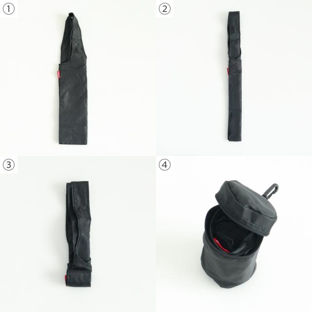 縦に三つ折りをして、さらに半分に折りたたみます。横に半分に折ってからくるくると巻いてポーチに収納します。ポーチは小さすぎないので、折りたたみのコツも要らずにさっと収納できます。