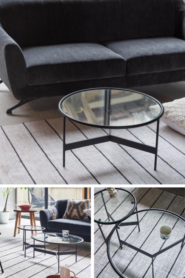 マットなブラックアイアンの滑らかな曲線とハードなガラスを組み合わせた、シンプルでスタイリッシュなガラステーブルです。リビングテーブルやサイドテーブルとしてお使い頂けます。天板の円形と直線的な脚部の絶妙なバランスは、置くだけで空間を洗練された雰囲気にしてくれます。