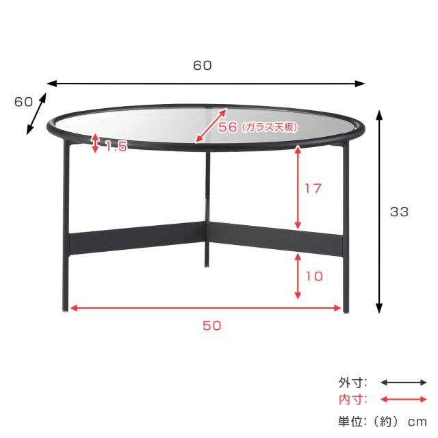ローテーブル 幅60cm 丸 ガラス ( リビング テーブル ガラステーブル 円形 ラウンド ブラック アイアン おしゃれ スタイリッシュ 完成品 )