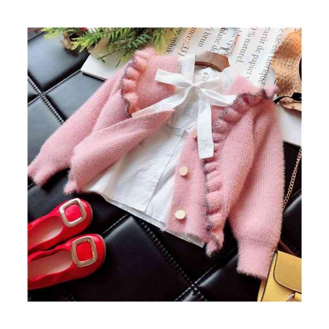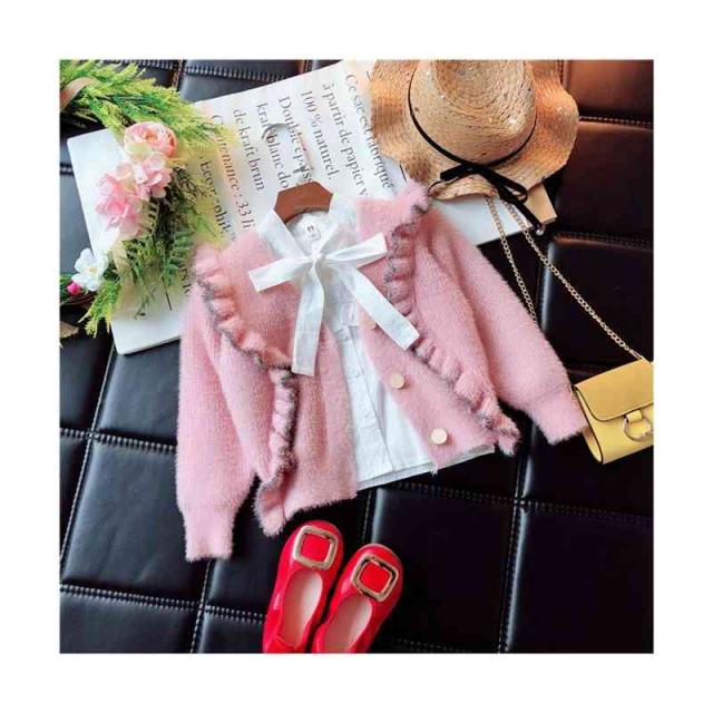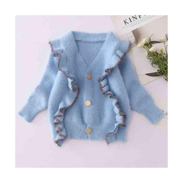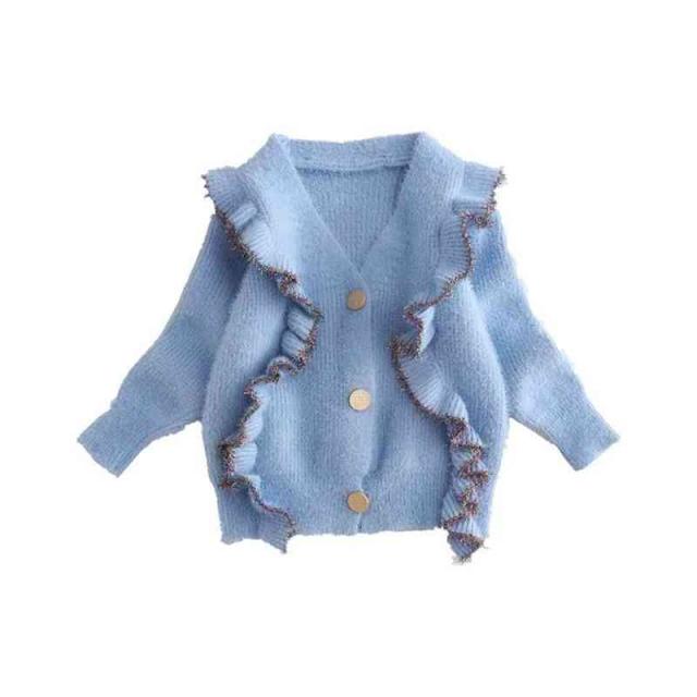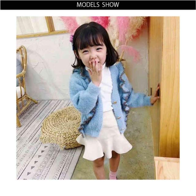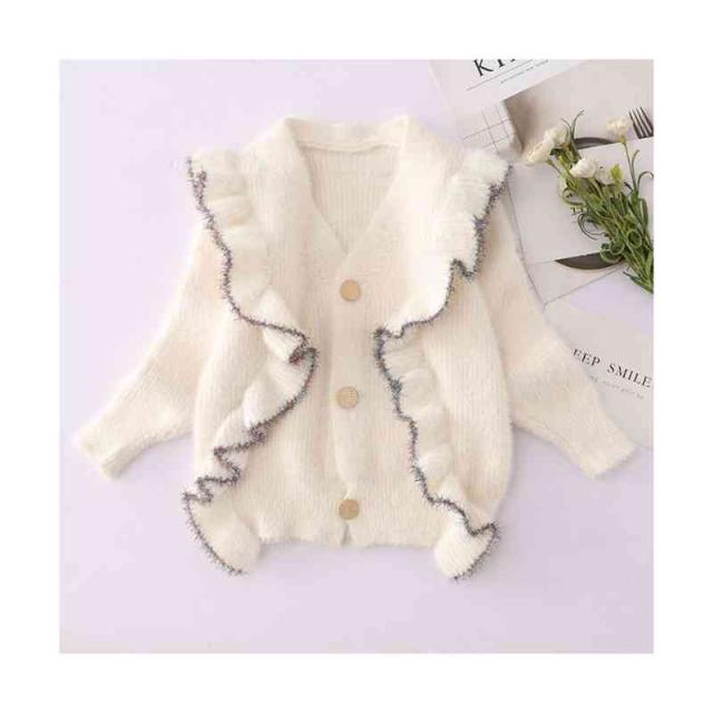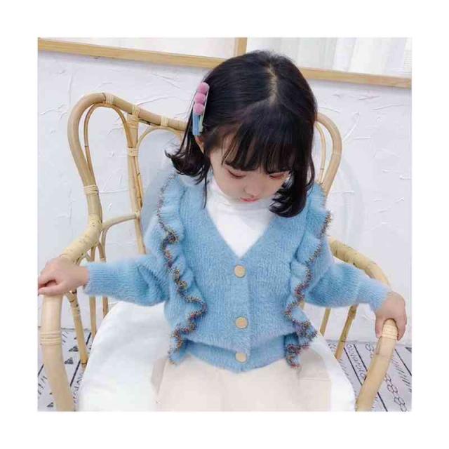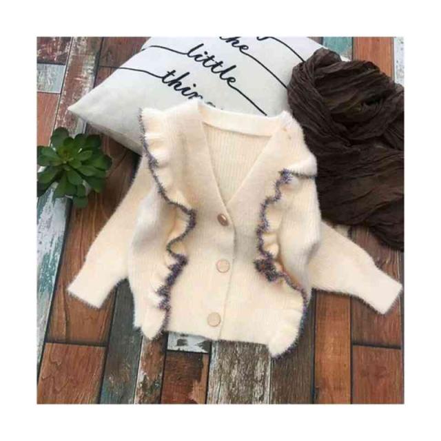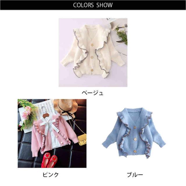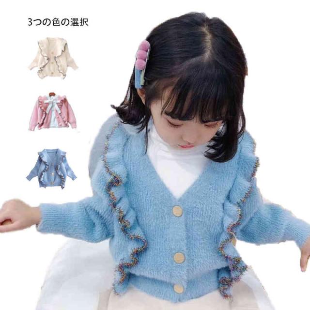 ゆったり カーディガン キッズ ニットカーディガン 春秋 ショート丈 フリルカーディガン おしゃれカーディガン ニットトップス 上着 女の子 長袖 無地 シンプル カジュアル おしゃれ 送料無料 おでかけ