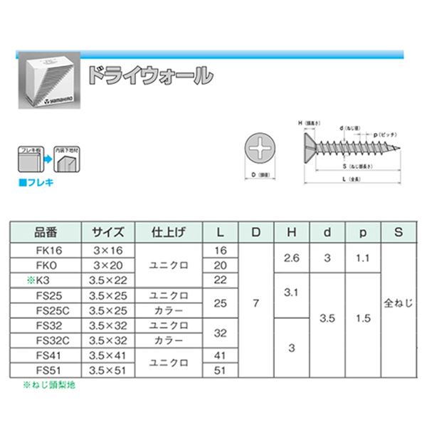 商品仕様: 軽天・内装工事用ビス FS51 3.5×51 フレキ頭 [500本入]【0010-00045】