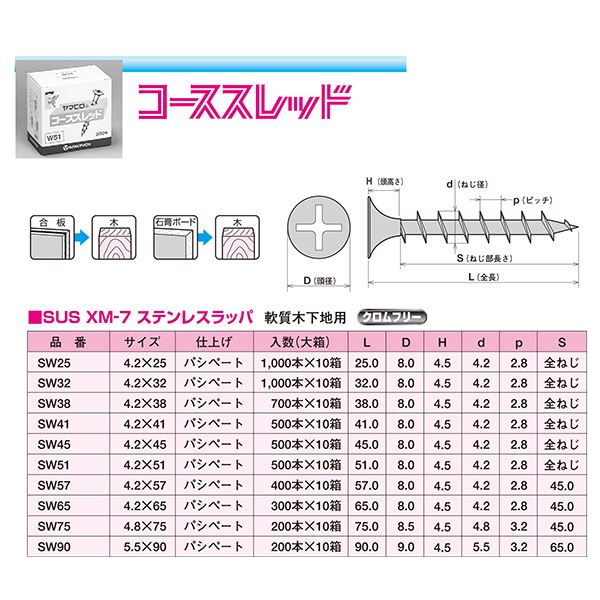 石膏ボードや合板に下穴をあける手間を省略!ステンレス製 螺子コース スレッド こーすすれっど こーす すれっど ねじ びす 工具 道具 資材 diy 建設 現場 リフォーム