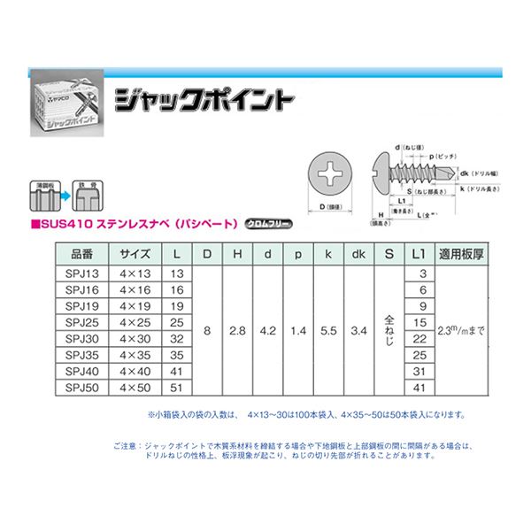 穴なしで簡単取り付け 最適なステンレスねじ ステンジャックポイントSPJ19 頼れる500本入り 薄鋼板に最適 【0010-01404】 穴なしで簡単取り付け 最適なステンレスねじ ステンジャックポイントSPJ19 頼れる500本入り 薄鋼板に最適 【0010-01404】