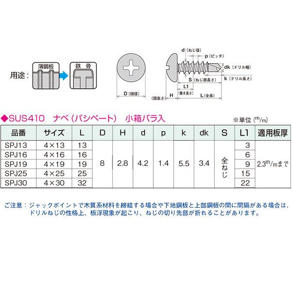穴なしで簡単取り付け 最適なステンレスねじ 驚きのステンジャックポイントSPJ16 バラ入り1000本 【0010-01413】 穴なしで簡単取り付け 最適なステンレスねじ 驚きのステンジャックポイントSPJ16 バラ入り1000本 【0010-01413】