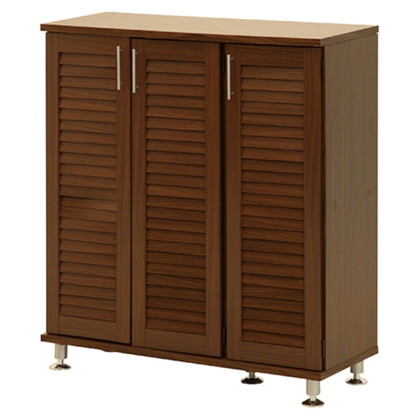 ルーバー シューズラック 下駄箱 約幅90.5cm ワイドタイプ ブラウン 取っ手付き扉3枚 棚板5枚 脚付き 玄関 エントランス 入口 茶 送料無料