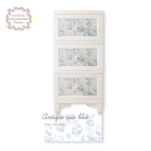商品仕様: 衣類収納 タンス 3段 アンティークローズブルー 青 日本製 猫脚 姫系 ドレスチェンジ チェスト Liloudecoco リルデココ お客様組立品