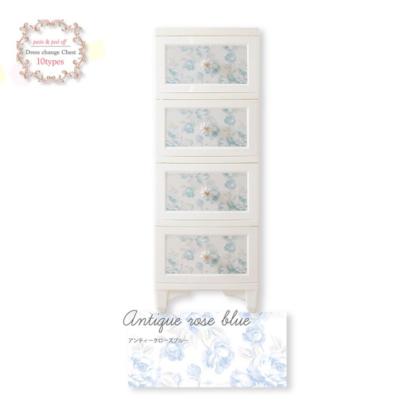商品仕様: 衣類収納 タンス 4段 アンティークローズブルー 青 日本製 猫脚 姫系 ドレスチェンジ チェスト Liloudecoco リルデココ お客様組立品