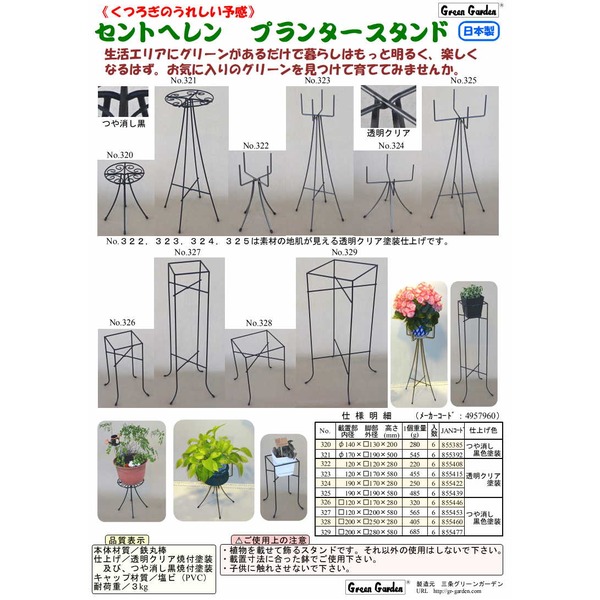 商品仕様: No.327 セントヘレンプランタースタンド120-580H