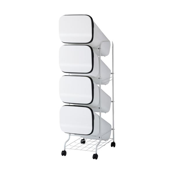 商品仕様: スタンド式 ダストボックス/ゴミ箱 【ホワイト 白 19L×4段】 高さ122cm キャスター付き 『スムース』
