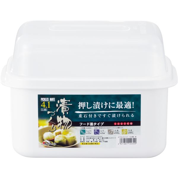 商品仕様: 【4セット】 漬物容器/漬物用品 【S-4型 ホワイト 白】 漬物づくり NEWピクルスメイト 〔キッチン用品 家庭用品 手づくり〕