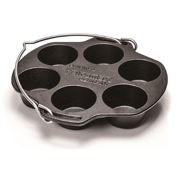 マフィンや小さなパンケーキを作るのに最適なキッチンツールです。直接直火にかけたり、ご自宅のオーブンに入れてお使いください。Petromaxダッチオーブンft6/ft9に入れてご使用することもできます。ダッチオーブンの蓋の上に炭を置くことができるのでマフィンモールドの上下からしっかり焼くことができます。