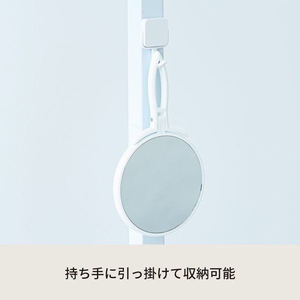 持ち手を立てると自立して卓上ミラーとしても使えます。