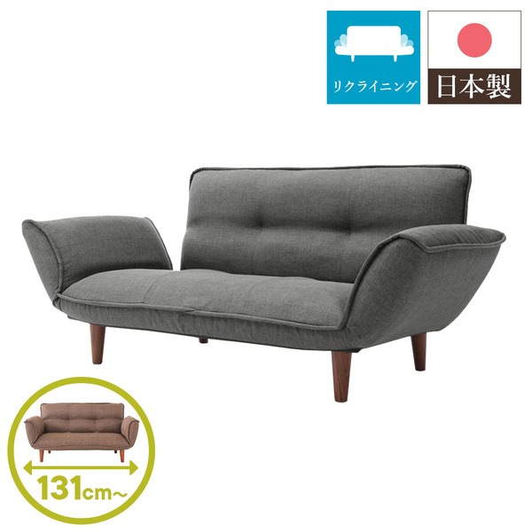 (キーワード: 高級 豪華 流行 くつろぎ 安らぎ リラックス ソファ ソファー リビング 応接 応接間 TCC524092 RDA0003589187 4052496 インテリア 寝具 ソファ ソファベッド ソファ 収納 ベッド 日本製 国産 の2人掛けカウチソファ、ローソファ 低い フロアタイプ ロータイプ フロアソファ に変身可能 デニム調生地のアッシュグレーで幅131cmのコンパクトサイズ 肘付きで脚も付いており、リクライニングソファーとしても使用可 ブラウンの脚部がアクセントで温かみをプラス 茶)