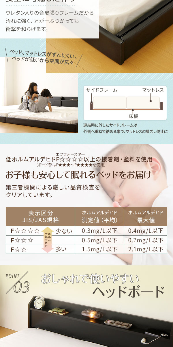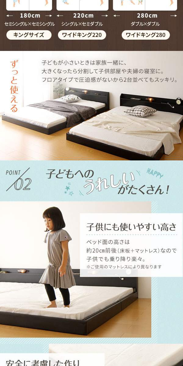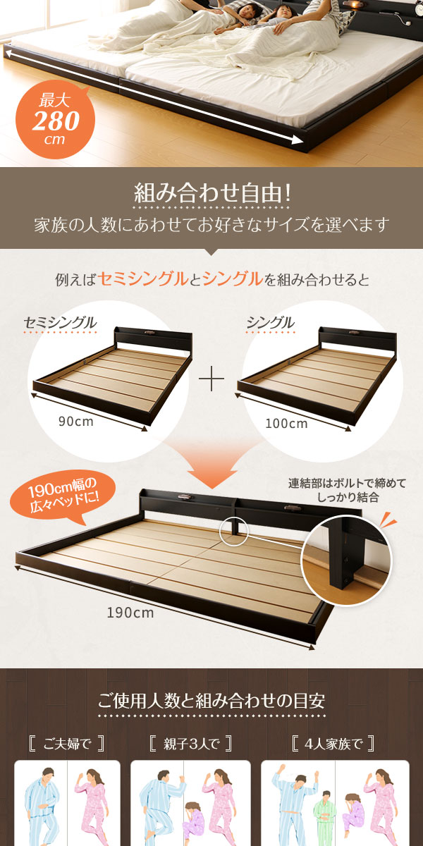 色々なサイズを連結!家族で使えるデザインローベッド民泊オーナーにも人気 おすすめ キングサイズ キングベッド キングベット 大きい おおきい 引き出し付き 引出し付き