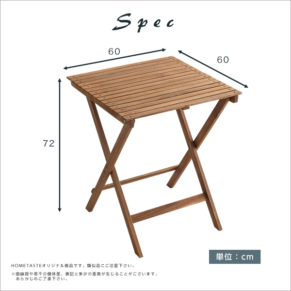 商品仕様: 折りたたみテーブル 約幅60cm 正方形 ブラウン 茶 木製 アカシア製 ガーデンテーブル ベランダ バルコニー アウトドア キャンプ