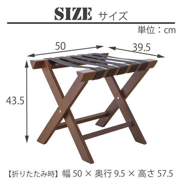 商品仕様: バゲージラック 荷物置き 約幅50cm ダークブラウン 茶 こげ茶 折りたたみ 木製フレーム ベッドルーム 寝室 リビング インテリア家具 完成品