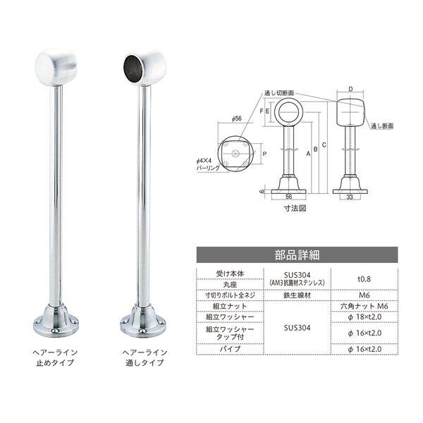 クローゼットのハンガー掛け用として豊富なサイズで様々にお使い頂けます。寸切りボルトを使用しているためパイプサイズ内でのフリーカットが可能です。