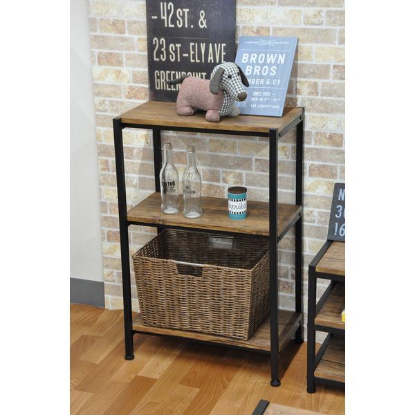 商品仕様: 収納棚 リビング収納 約幅50cm 3段 ブラウン 茶 スチールフレーム アジャスター付き ブロンクス リビング ダイニング 店舗 什器