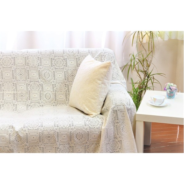商品仕様: ソファーカバー ベッドカバー 190×290cm 長方形 洗える 綿混 日本製 レースマルチカバー リビング ダイニング ベッドルーム