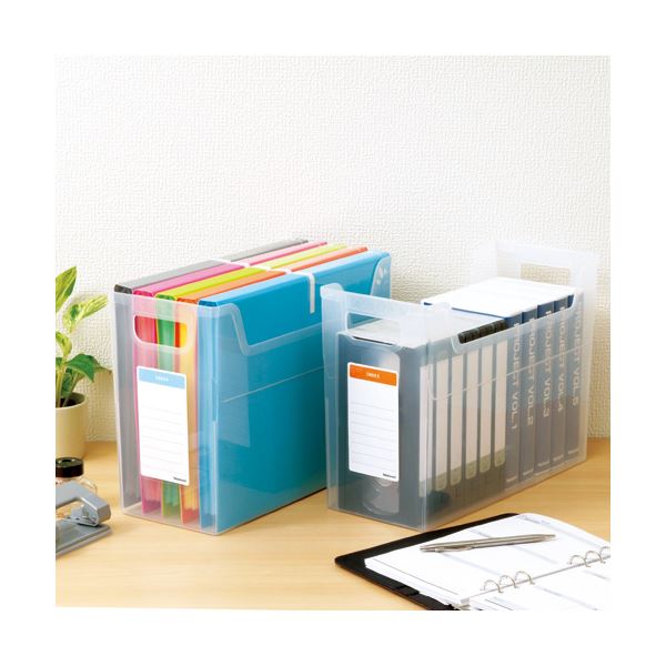 (キーワード: オフィス 事務 事務所 事務員 仕事 職場 仕事 仕事場 職場 会社 法人 整理 整理整頓 5s 5s 収納 耐久 効率 効率化 書類 ファイル 保管 保存 長期保管 TCC263642 RDA0004208729 4643880 日用品 文房具 手芸用品 日用品 生活雑貨 収納用品 マガジンボックス 雑貨 手芸 ファイルボックス 透明なボディで見やすい シンプルなファイルボックス A4サイズ横置き、背幅162mm、クリアブルー 10個セットでお得 青)