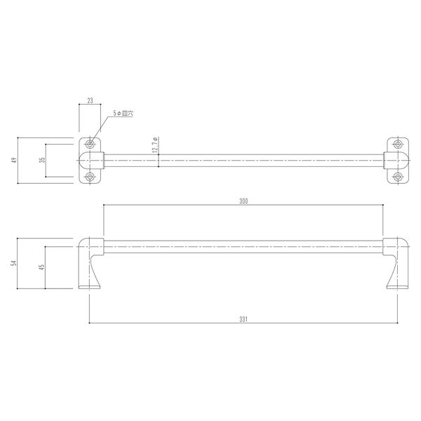 【寸法】タオル有効掛幅:300mm 取付芯々:331mm パイプ径:12.7φ