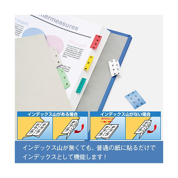 ミシン目入りで折りやすくきれいに貼れるインデックス用ラベルです。