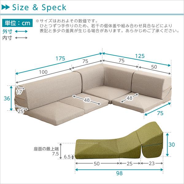 コーナー:(約)幅75x奥行き75x高さ36cm(座面高:7.5cm)