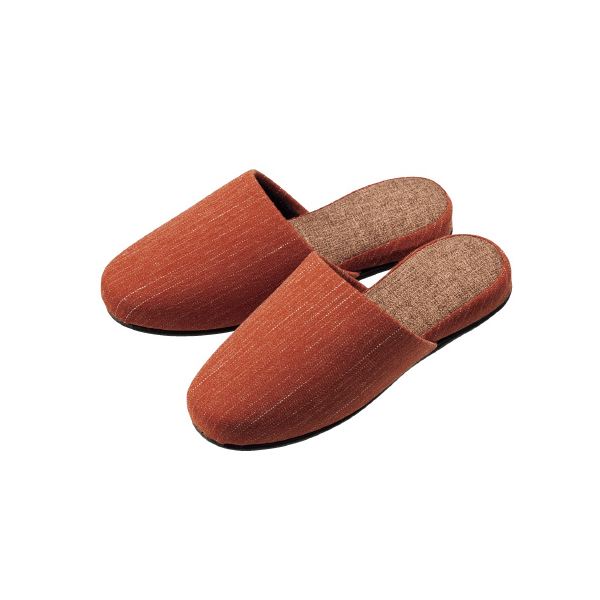 鮮やかなダークオレンジのステッチ柄ツートンスリッパがセットで10個 足元を彩るオーミケンシのスリ