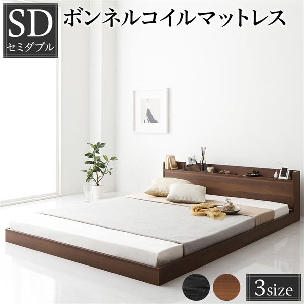商品仕様: ベッド セミダブルベッド ボンネルコイルマットレス付き 茶色 ブラウン 茶 低床 宮付 コンセント すのこ ローベッド