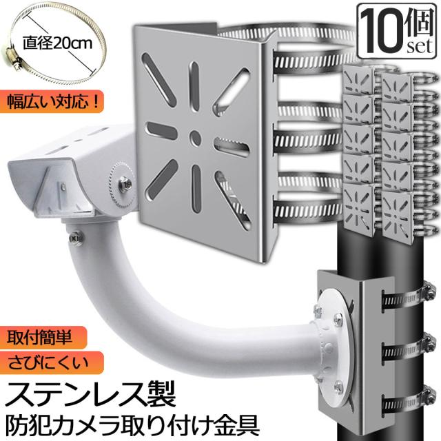 防犯カメラ ポール 取付金具 10個セット カメラ ブラケット スタンド ステンレス製 ハウジング 穴開け ビス止め 不要 監視カメラ ダミー ハウジング ブラケット円柱 角柱 屋外 設置 すぐ使える