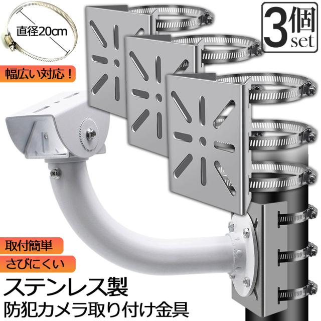 防犯カメラ ポール 取付金具 3個セット カメラ ブラケット スタンド ステンレス製 ハウジング 穴開け ビス止め 不要 監視カメラ ダミー ハウジング ブラケット円柱 角柱 屋外 設置 すぐ使える