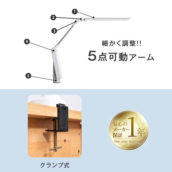 デスクライト 5点稼働 LED 目に優しい 3段階 調光 省エネ 長寿命 L型 卓上ライト 省エネ クランプ 学習ライト 学習机 LEDデスクライト 卓上ライト 電気スタンド テーブルライト ライト シンプル ホワイト 白 子供 おしゃれ