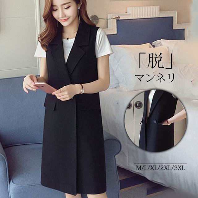 ジレ ロングジレ レディース ロングベスト ベスト カジュアル 羽織 フォーマルベスト 着痩せ ゆったり ジレベスト 前開き ノー